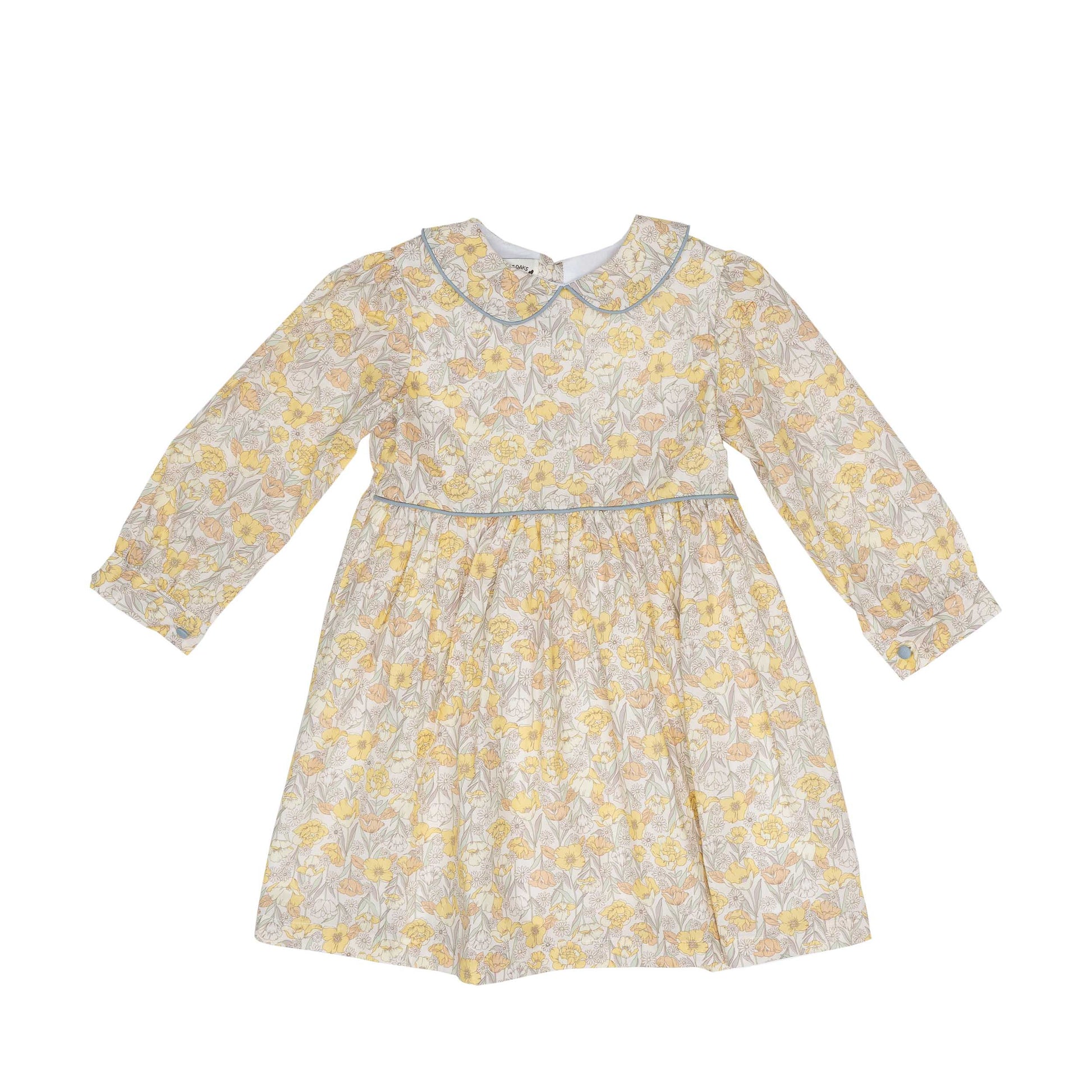 This Yellow floral Allison Dress is just precious and the perfect length for this Fall. Pair this sweet dress with coordinating colored tall socks . We recommend washing on gentle cycle with like colors. Lay flat to dry.