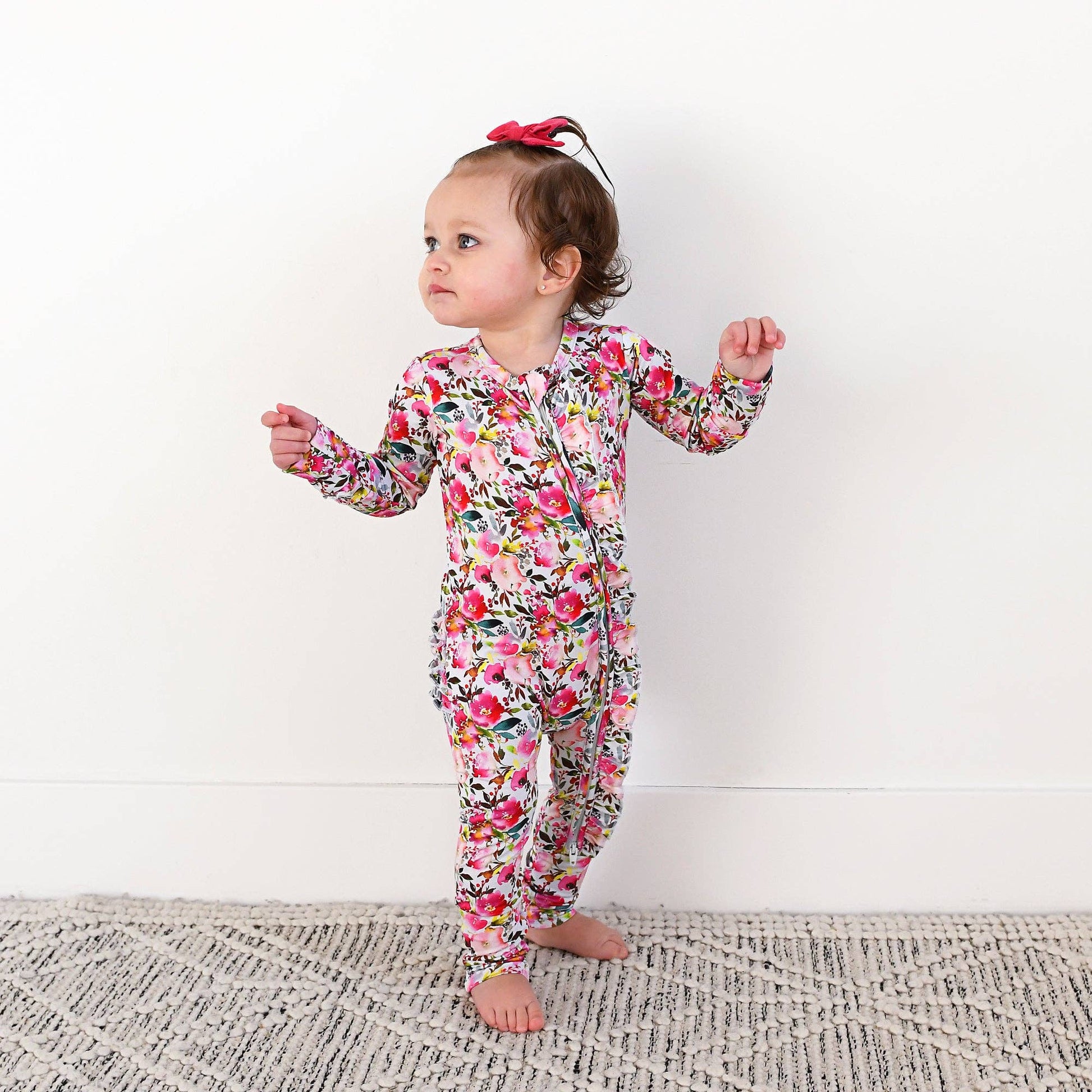 This zip one piece is super soft and comfortable. Featuring a zipper that runs from the top of the outfit to the ankle. Our favorite part about this outfit is that the zipper is 2 way! Making for super easy diaper changes without having to remove the whole outfit.
