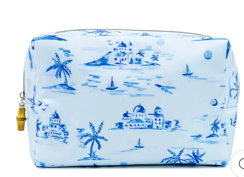 Perfect for Everyday use! This ultimate large, soft, lightweight zippered pouch is ideal for toiletries, cosmetics and everything in between. This style is designed to stand on its own and has an interior pocket for smaller needs. Both functional and beautiful, this would be a great addition to any TRVL set and don't forget, it is wipeable inside and out.