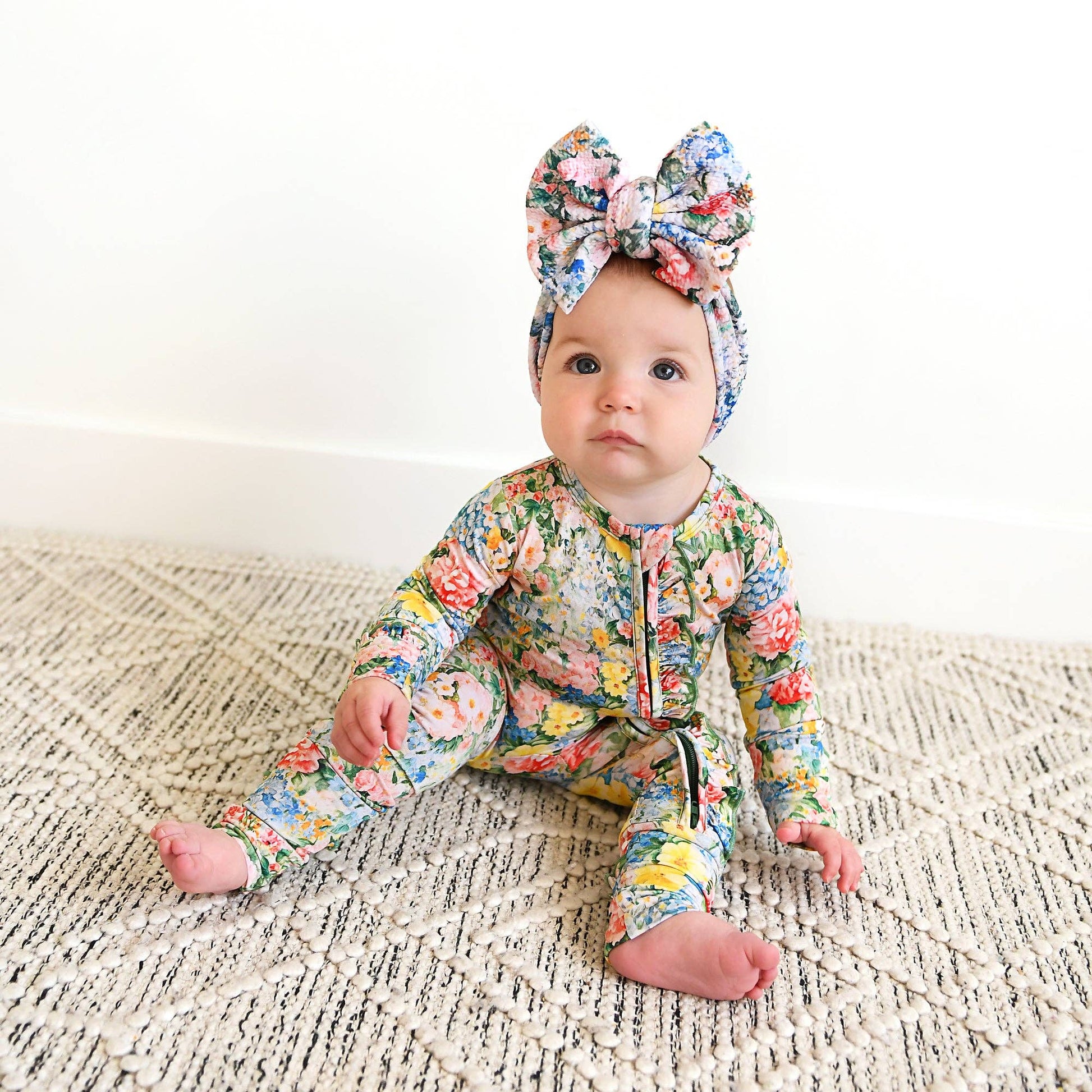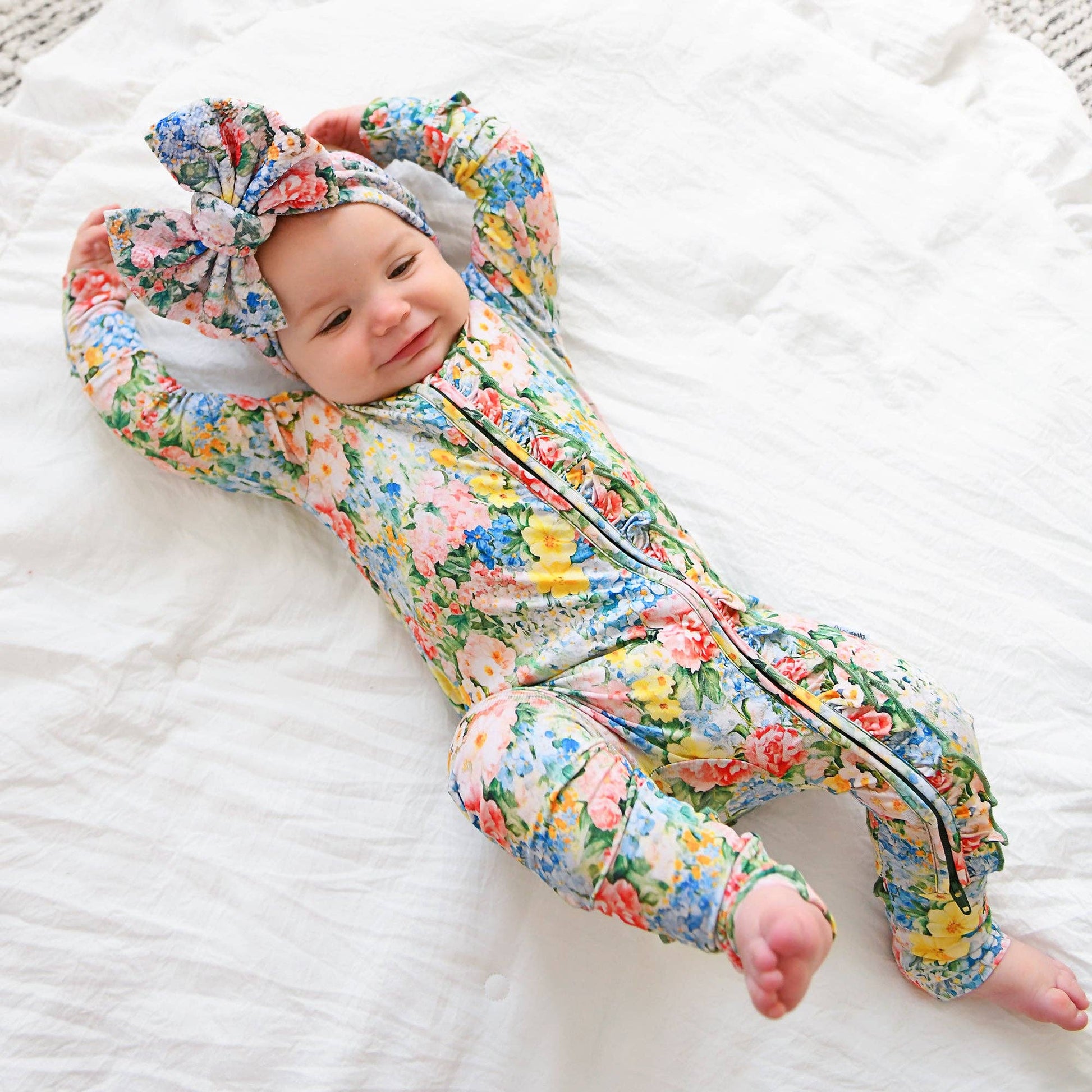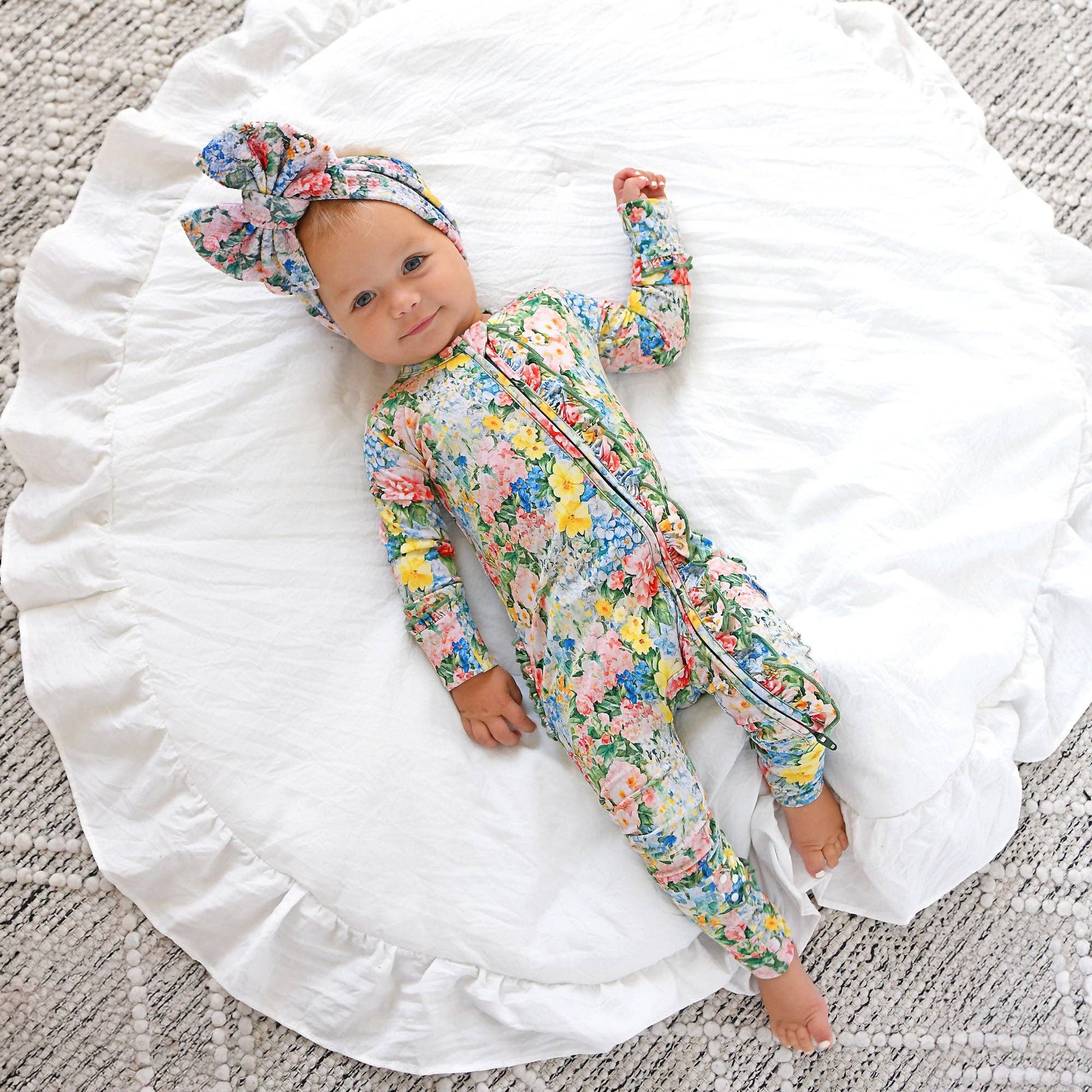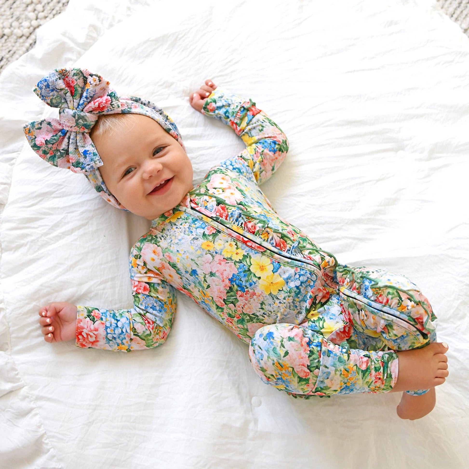 This zip one piece is super soft and comfortable. Featuring a zipper that runs from the top of the outfit to the ankle. Our favorite part about this outfit is that the zipper is 2 way! Making for super easy diaper changes without having to remove the whole outfit. The fabric we used is super stretchy and breathable, made from bamboo viscose, wait until you feel how soft it is! Mitten cuff on arm keeps baby from scratching, if needed. Fold-over foot at ankle can be used on chilly days when you forgot the socks! Please note: newborn size is footed. The foot grips are designed to provide enhanced traction for babies and toddlers. To ensure the longevity and effectiveness of the foot grips, it is essential to follow proper washing and drying instructions. Improper care may lead to deterioration of the material and reduce the grip’s effectiveness over time. While they offer increased traction, they do not guarantee complete protection against slips, falls, or other accidents.