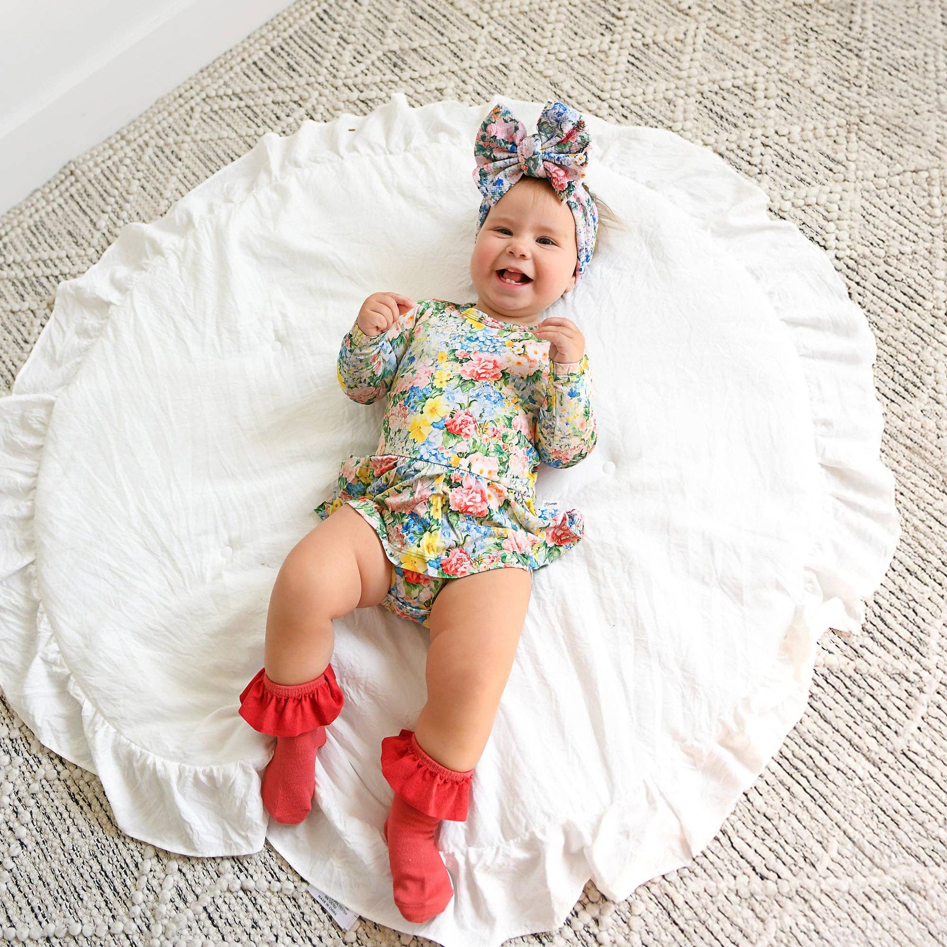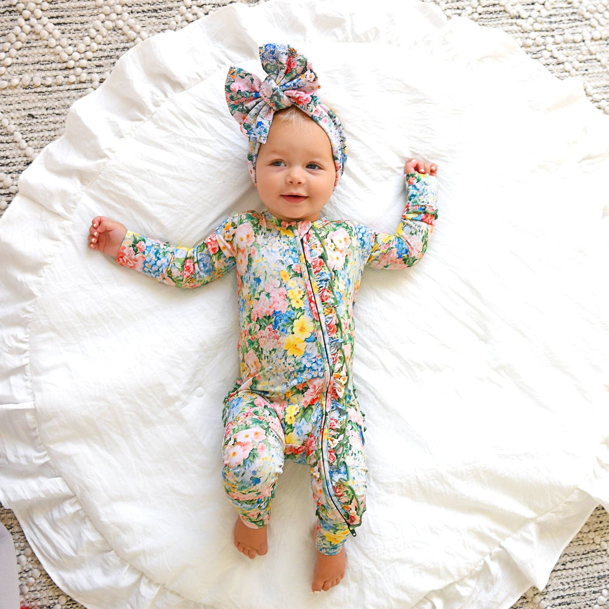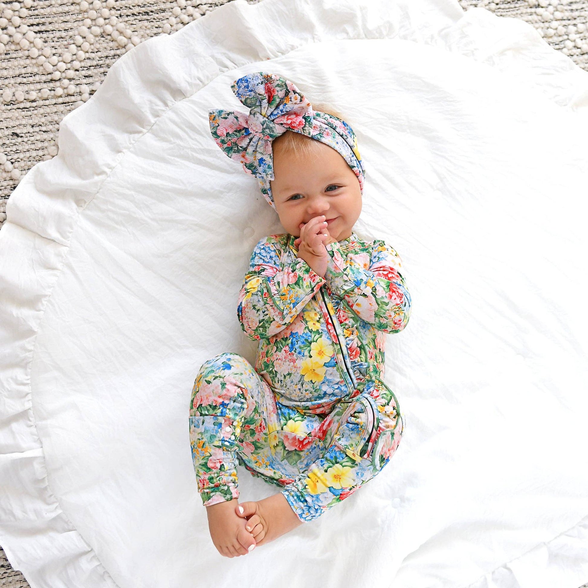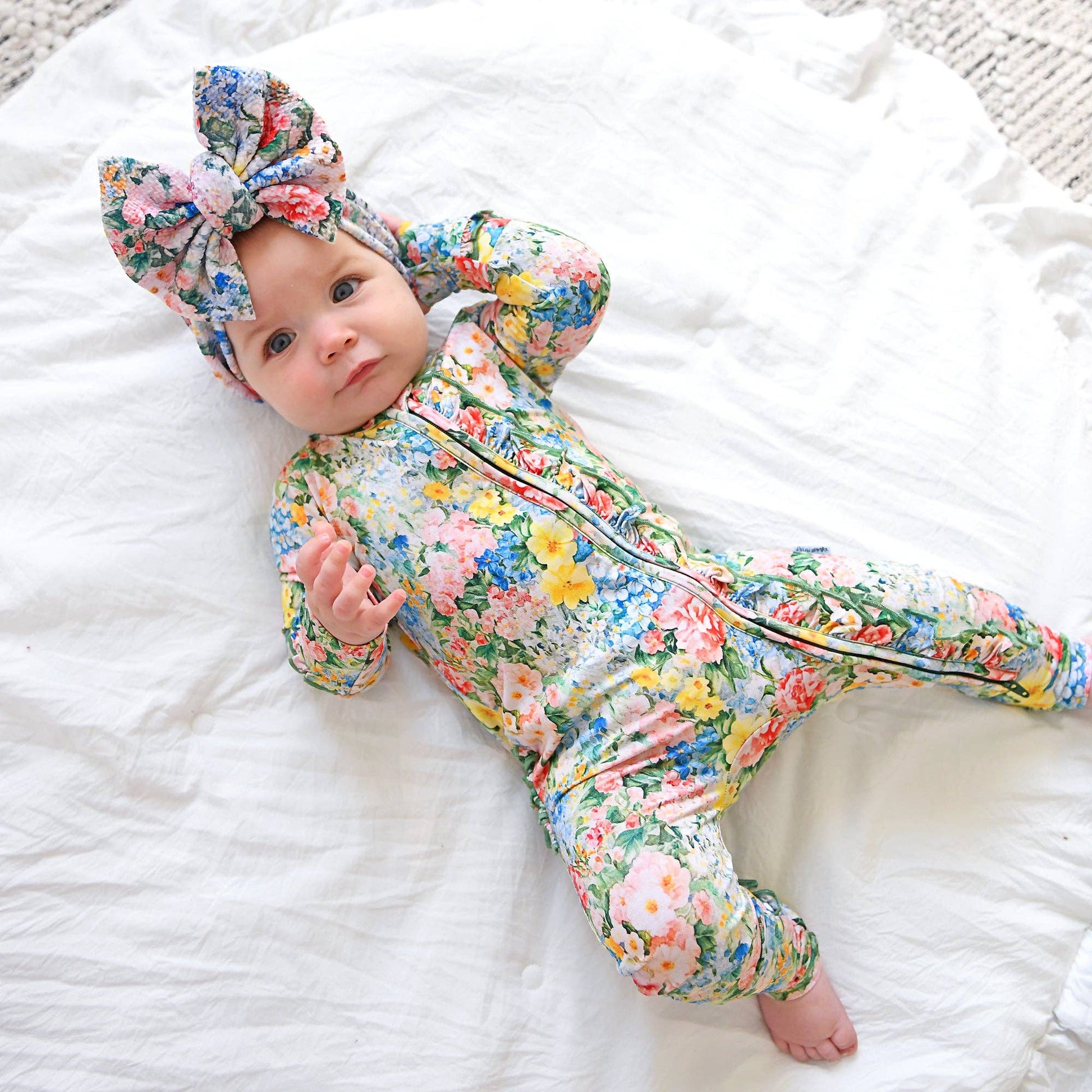 This zip one piece is super soft and comfortable. Featuring a zipper that runs from the top of the outfit to the ankle. Our favorite part about this outfit is that the zipper is 2 way! Making for super easy diaper changes without having to remove the whole outfit. The fabric we used is super stretchy and breathable, made from bamboo viscose, wait until you feel how soft it is! Mitten cuff on arm keeps baby from scratching, if needed. Fold-over foot at ankle can be used on chilly days when you forgot the socks! Please note: newborn size is footed. The foot grips are designed to provide enhanced traction for babies and toddlers. To ensure the longevity and effectiveness of the foot grips, it is essential to follow proper washing and drying instructions. Improper care may lead to deterioration of the material and reduce the grip’s effectiveness over time. While they offer increased traction, they do not guarantee complete protection against slips, falls, or other accidents.
